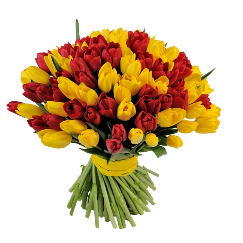 Букет из 101 красного и желтого тюльпана