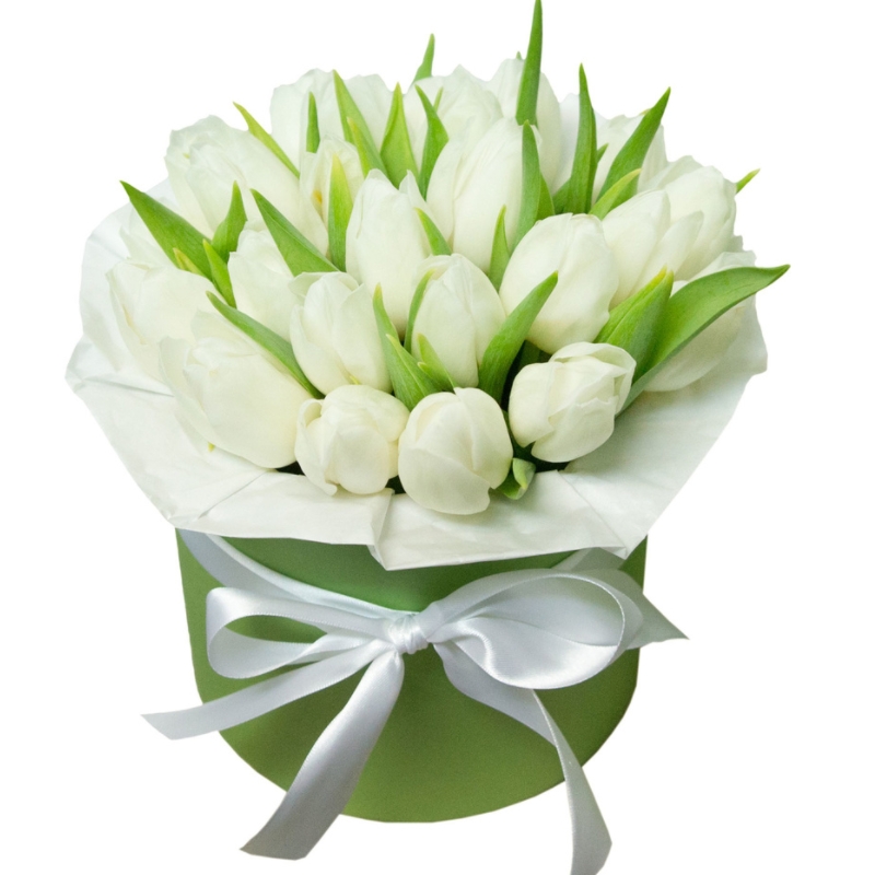 Букет из 25 тюльпанов в коробке